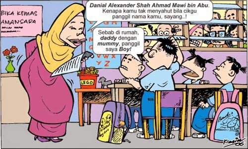 Kahkah betul jugak tu. Cina dah besar nanti mula la nama jadi alex lam la, alexander lui la, eliza ...