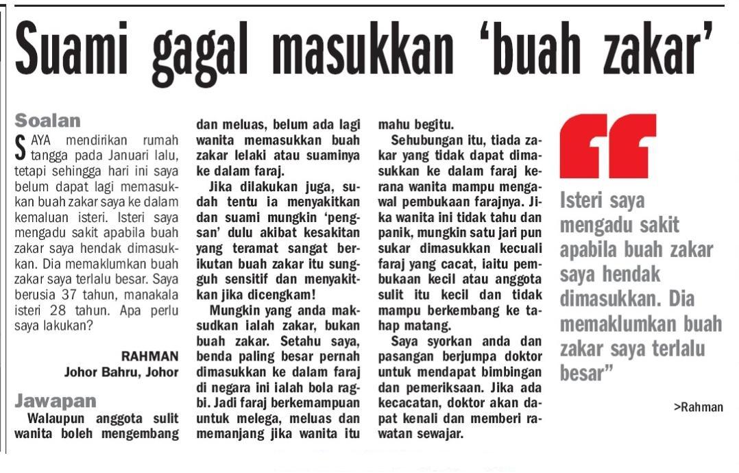 Jadi, pengajaran untuk hari ini adalah., kalau faraj tak sampai sejari,