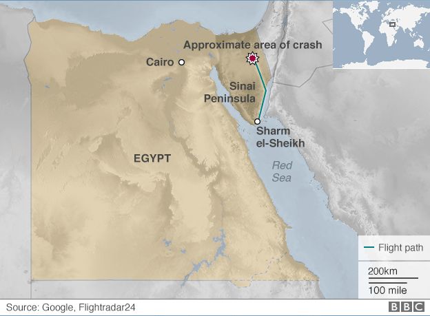 The BBC's Ranyah Sabry in Cairo reports that the flight's captain had asked for an emergency landing at El Arish airport, but the plane did not make it and crashed 50km (30 mile) away. People in Egypt are mainly exploring a technical fault in the plane.