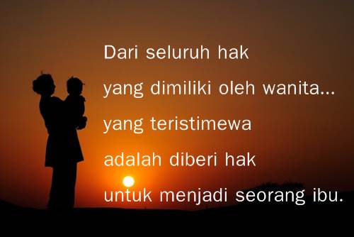 Aku mungkin tidak pernah mengucapkan terima kasih untuk semua yang Engkau lakukan untukku. Engkau membawaku ke dunia ini , mengajariku bagaimana berjalan , melindungiku dari bahaya , memotivasiku untuk mengambil keputusan sendiri , mendukungku setiap kali aku tersandung dan yang paling penting membangkitkanku setiap kali aku jatuh . Jadi Aku menggunakan hari ini sebagai kesempatan untuk mengucapkan terima kasih . Terima kasih banyak Ibu...