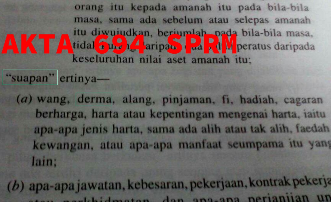Naib presiden PKR itu berkata, takrifan “suapan” di bawah akta ini termasuklah hadiah dan derma apabila hadiah dan derma itu diberikan untuk mendapat balasan.