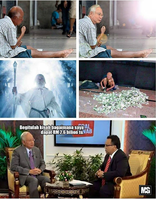 Urus niaga pemindahan wang sebanyak RM2.6 bilion ke akaun peribadi Najib katanya, hanyalah satu tugasan kecil yang kebetulan mendapat perhatian rakyat apabila The Wall Street Journal mendedahkan mengenainya.