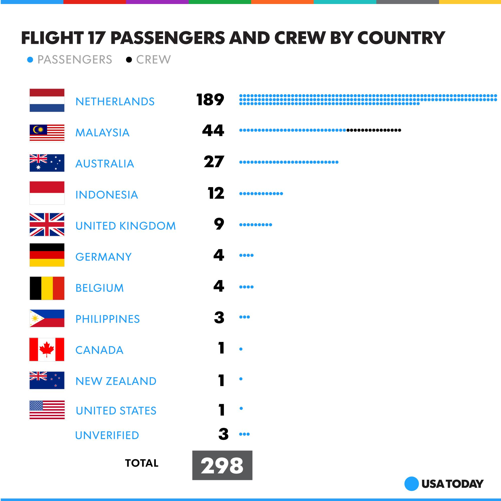 The airline said the plane was carrying a total 298 people, including three infants – 283 passengers and 15 crew. It earlier said it had been carrying 295 people.