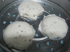 1. Panaskan air dalam periuk kukus. Campurkan halba dalam ubi kayu. (ada juga orang campur garam dalam ubi tapi saya tak suka )